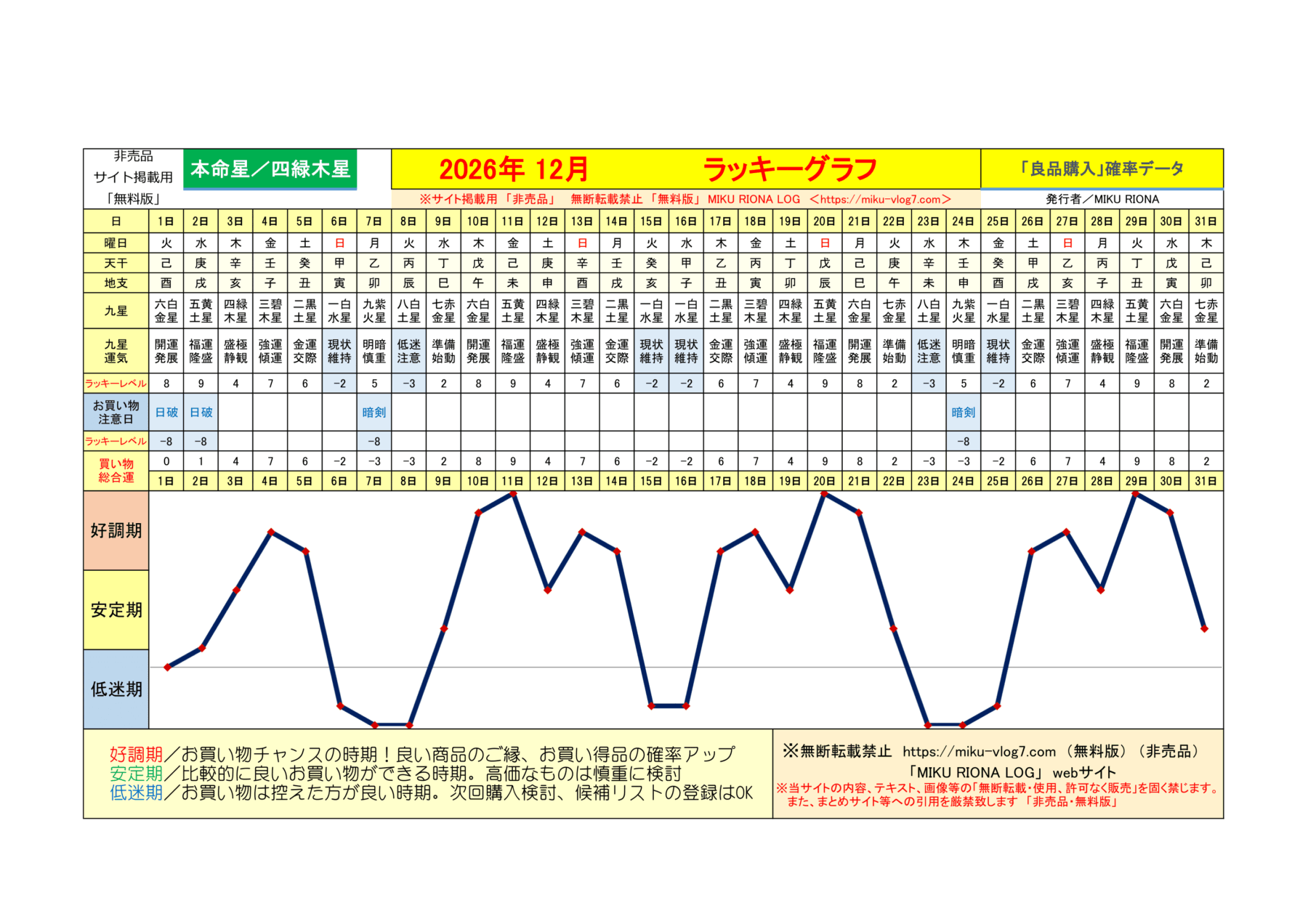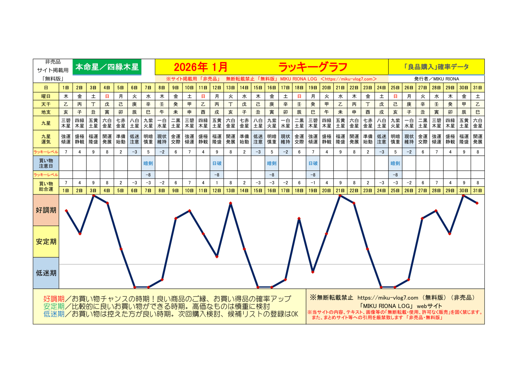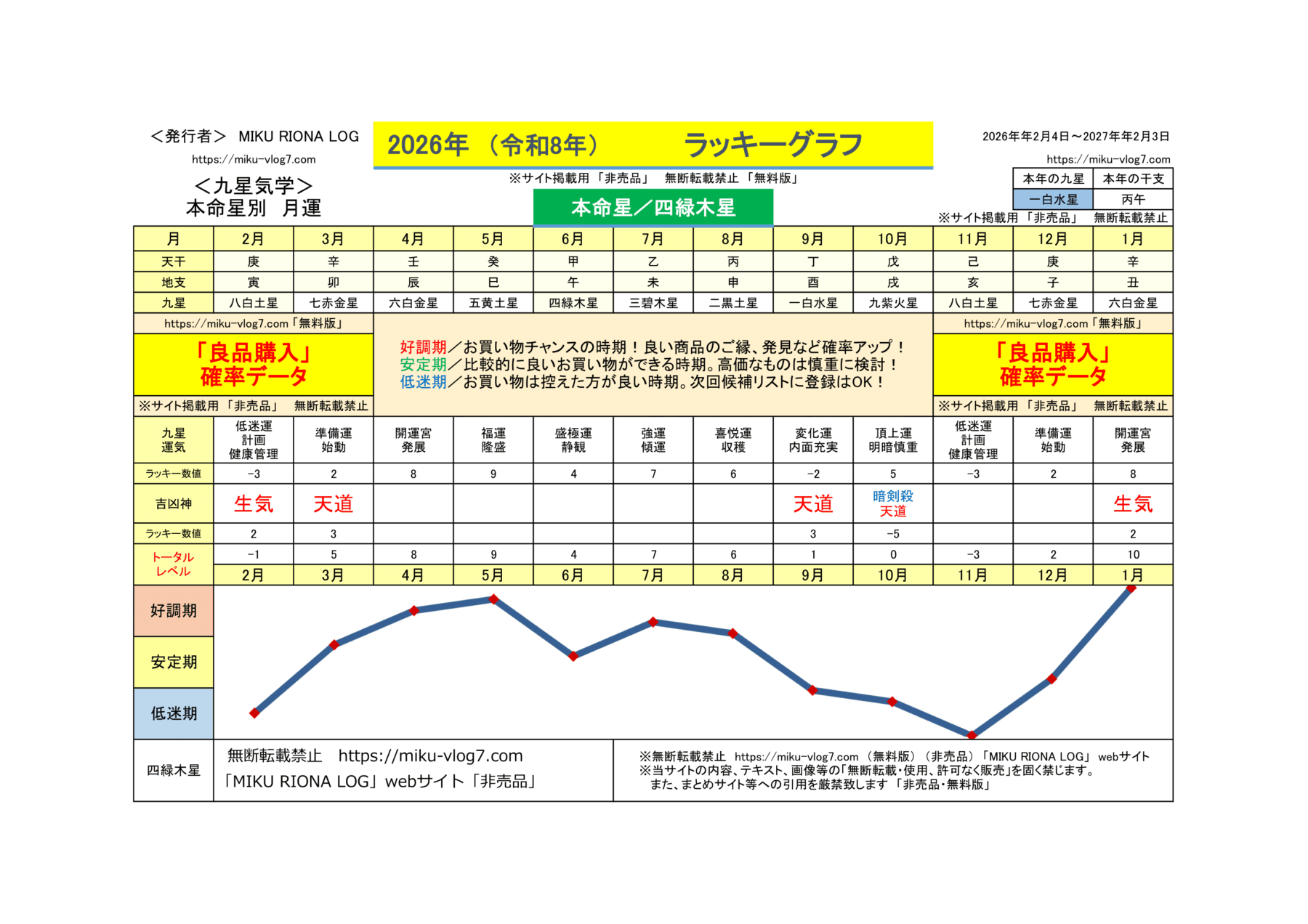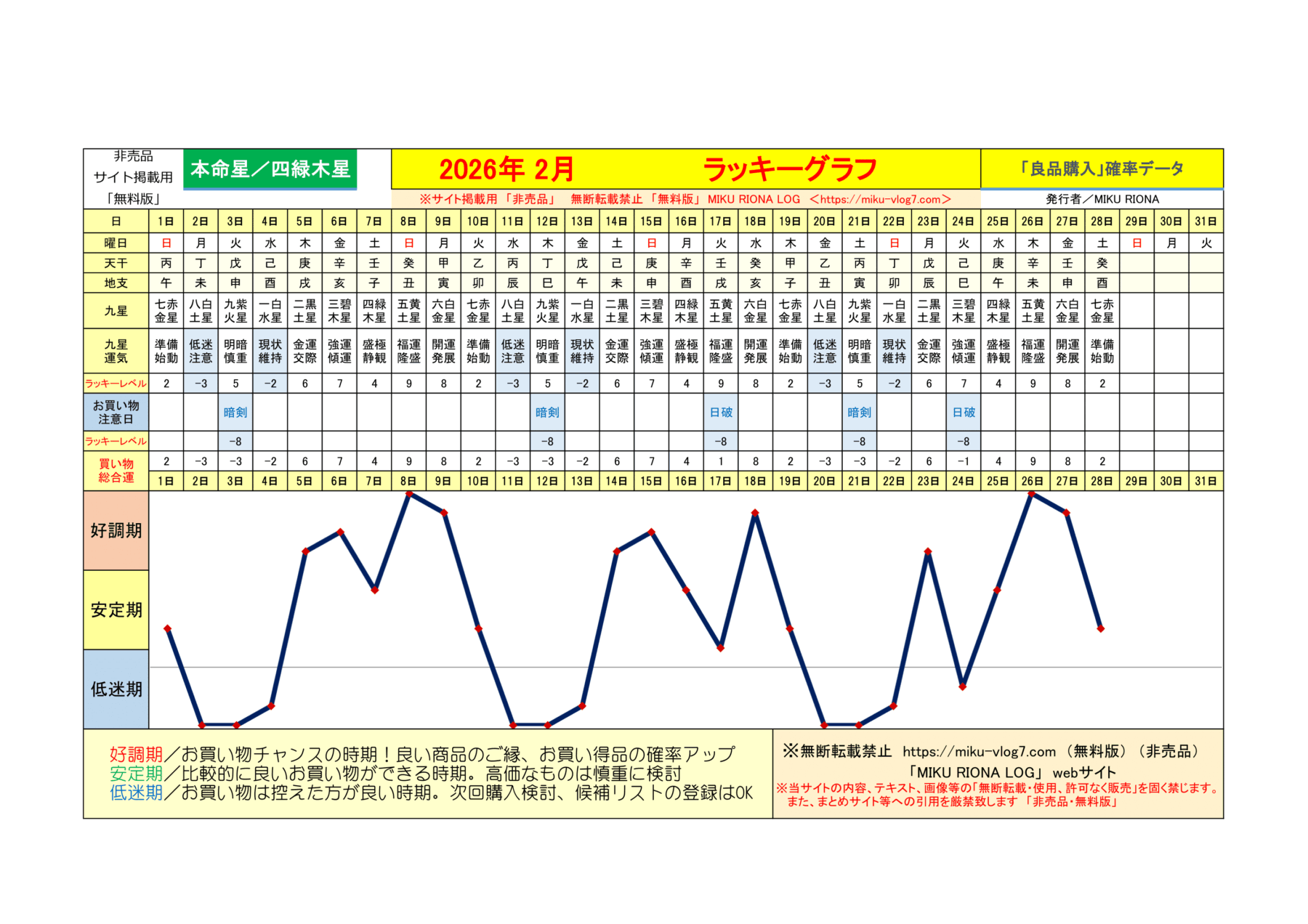 2026年2月~2027年1月/毎月のラッキーグラフ