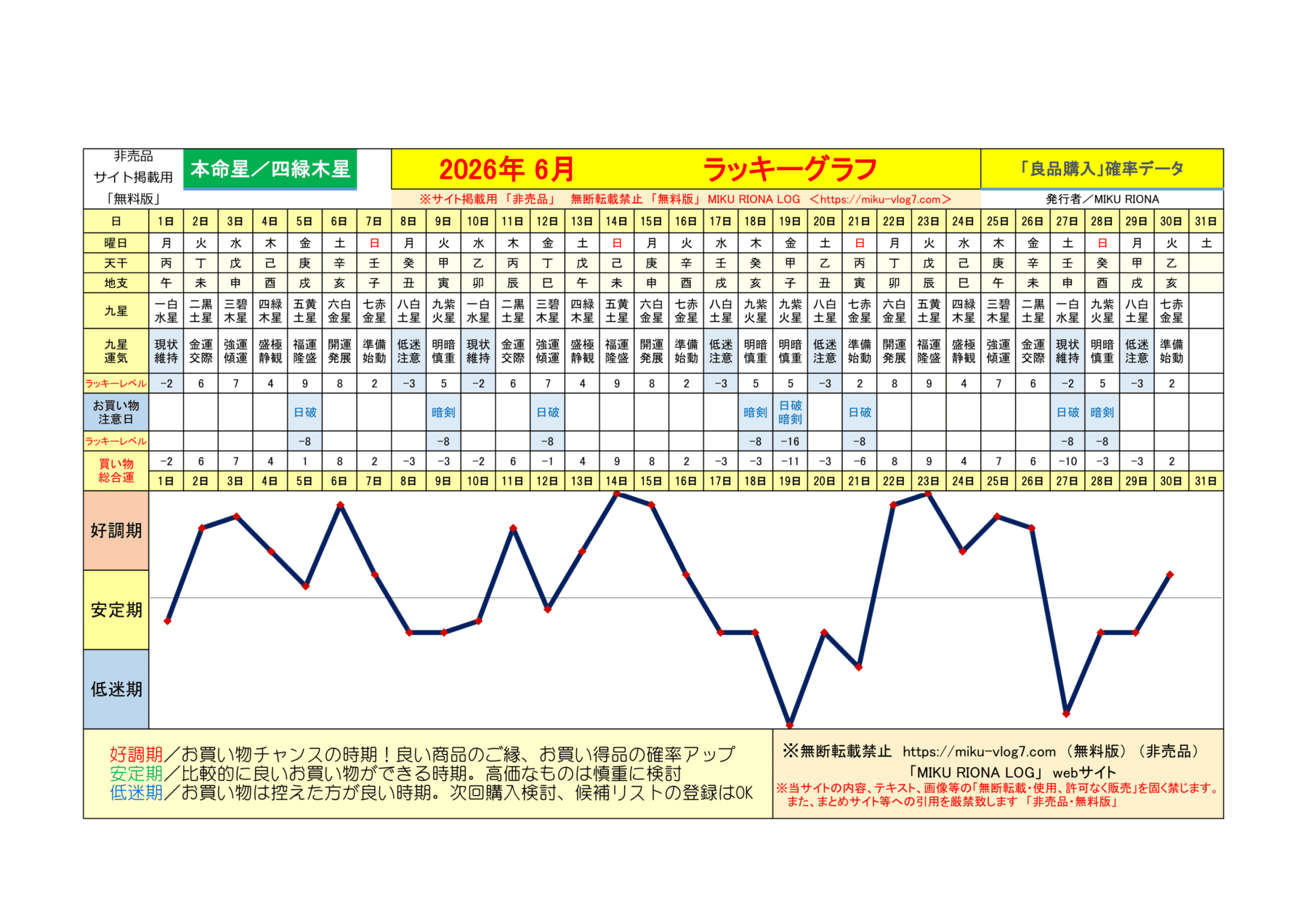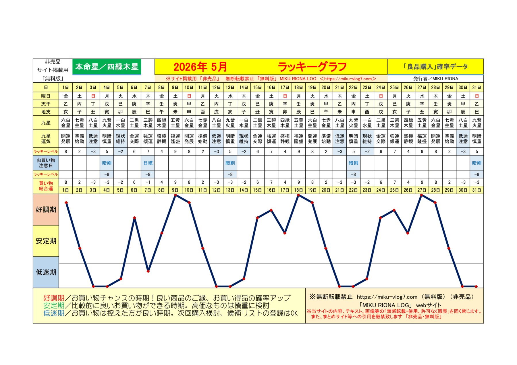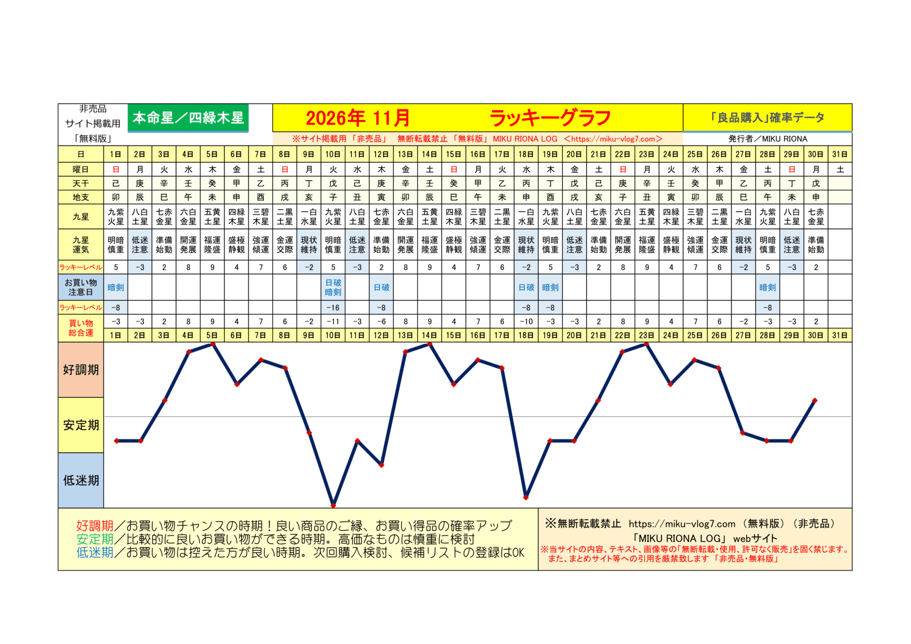 2026年2月~2027年1月/毎月のラッキーグラフ