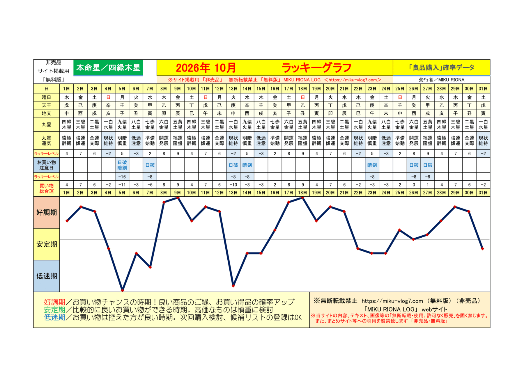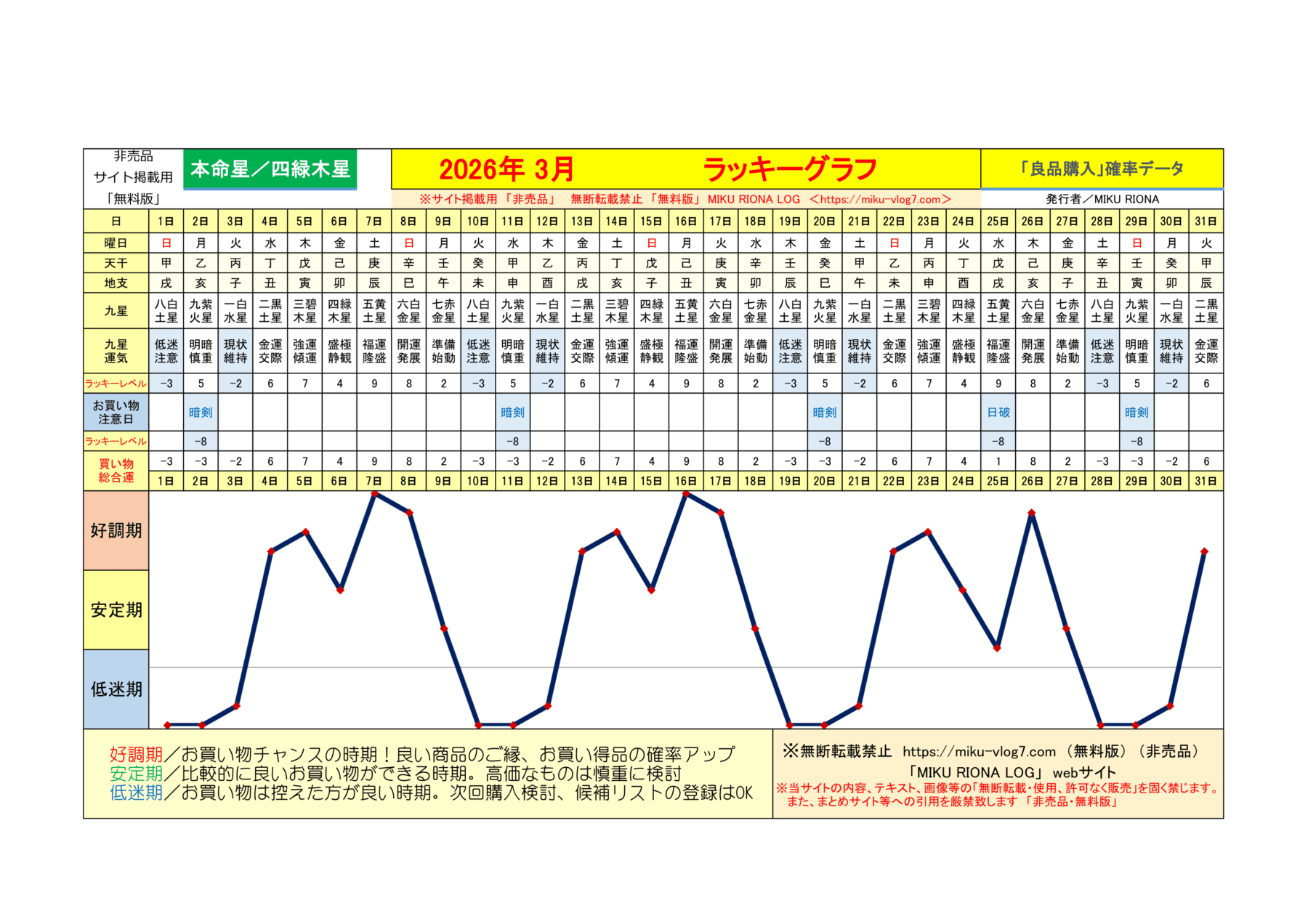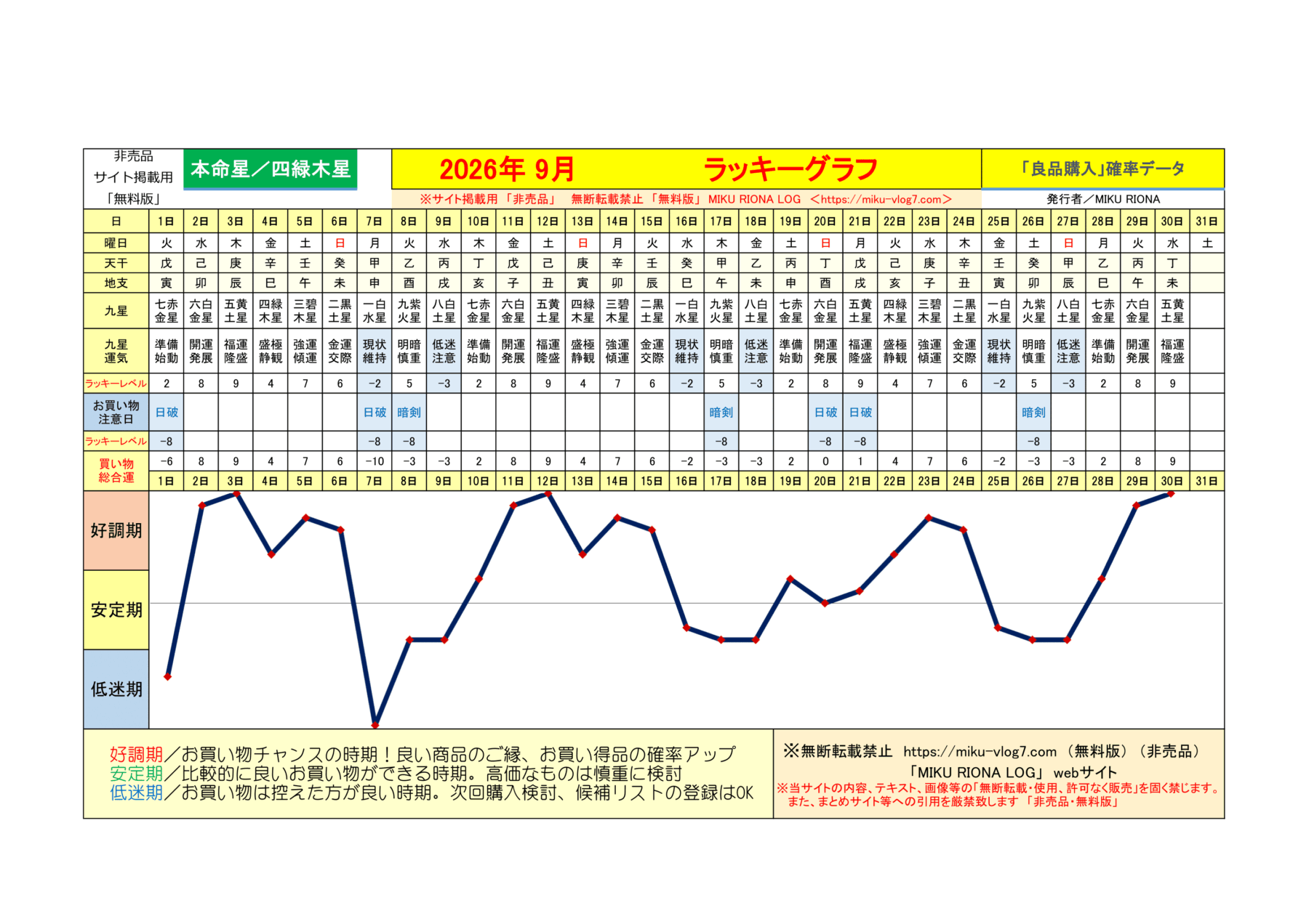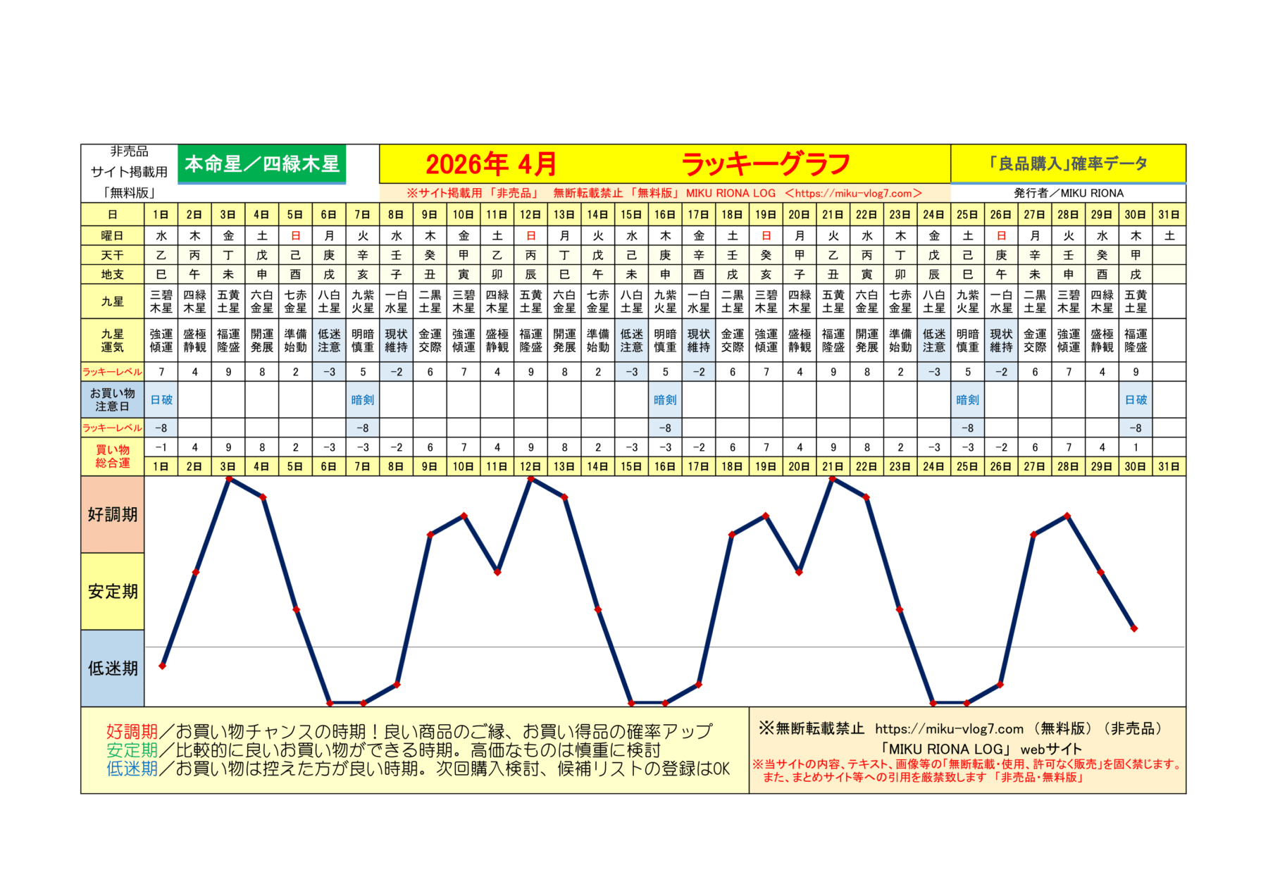 2026年2月~2027年1月/毎月のラッキーグラフ