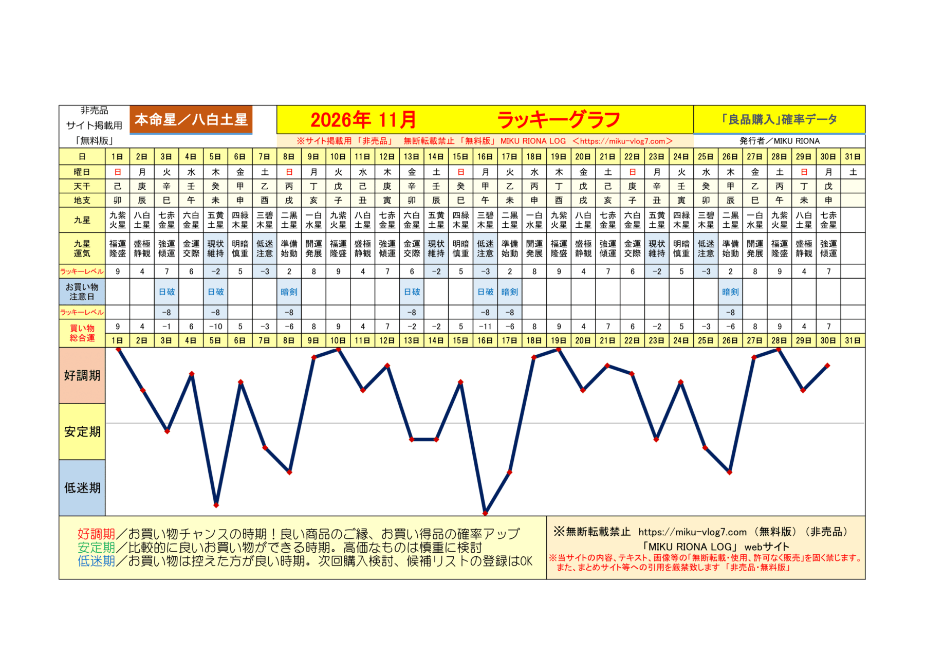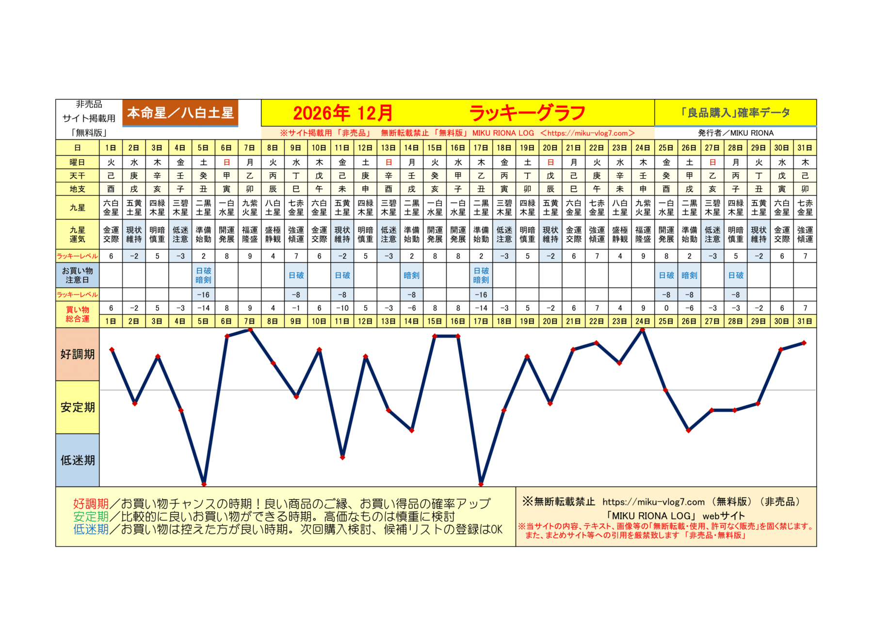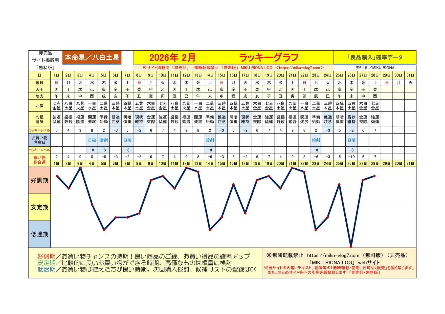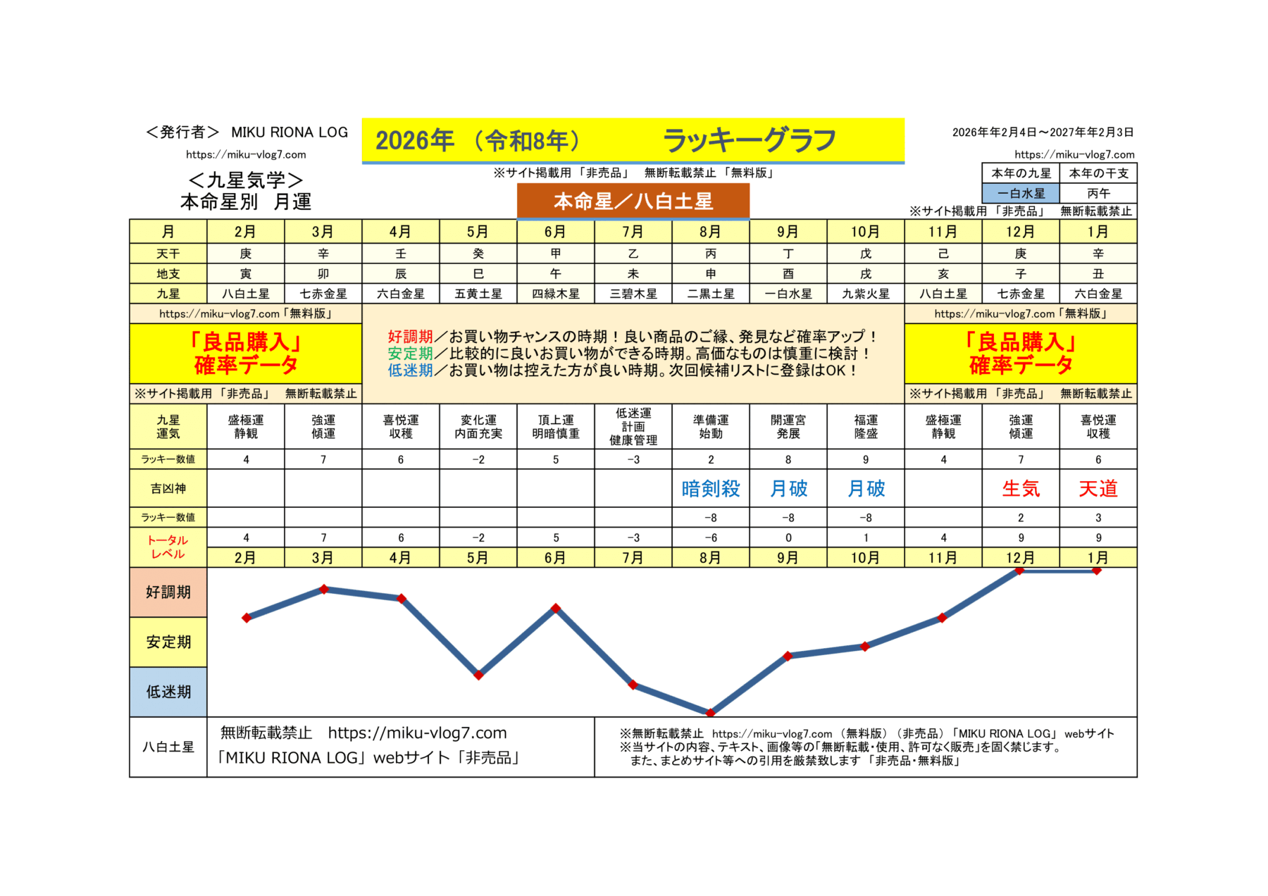 2026年2月~2027年1月/毎月のラッキーグラフ