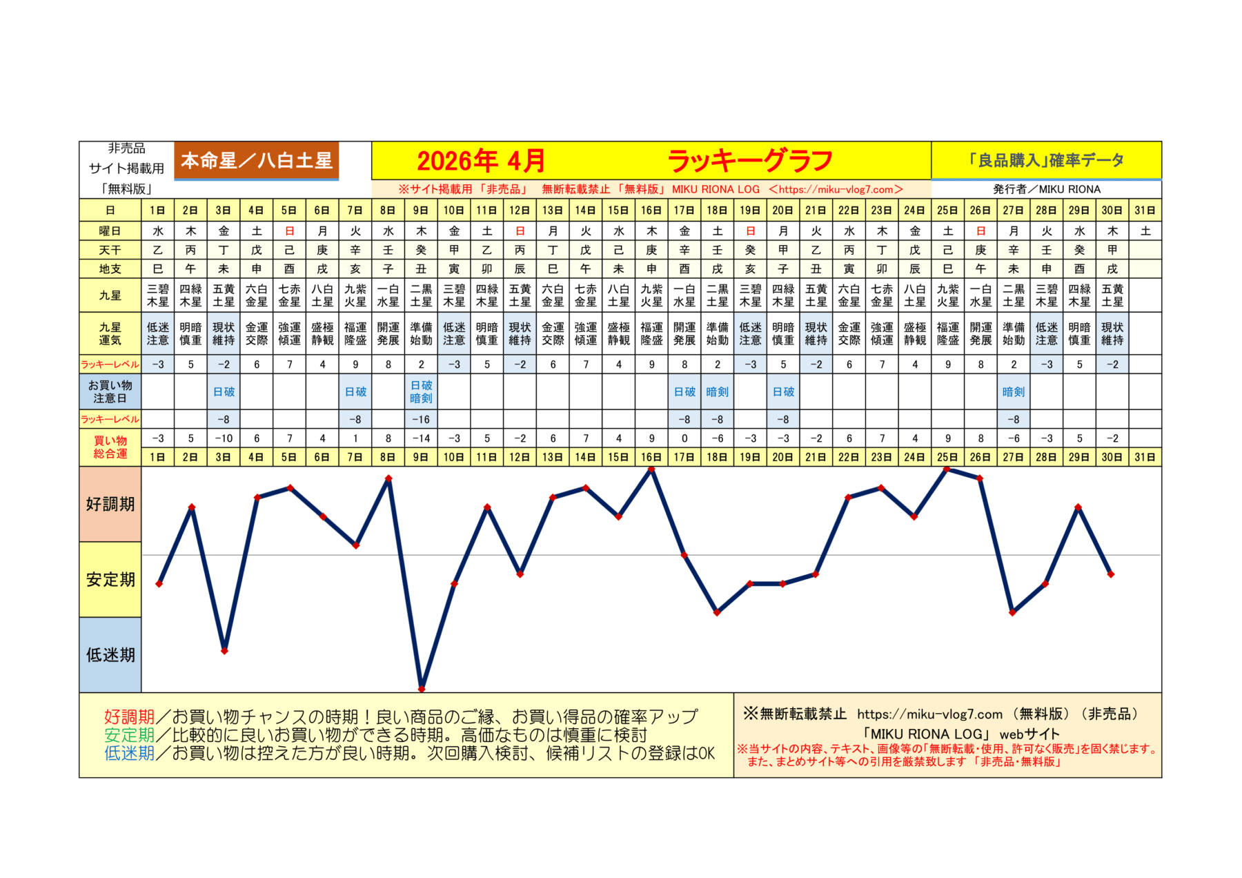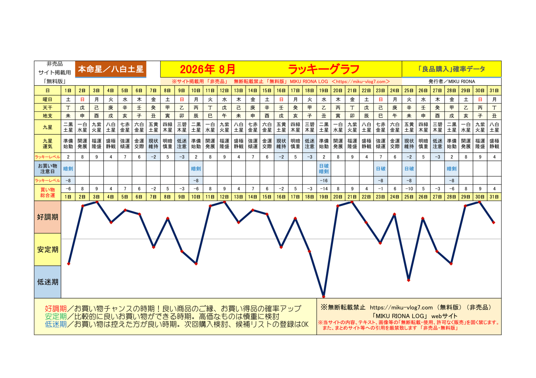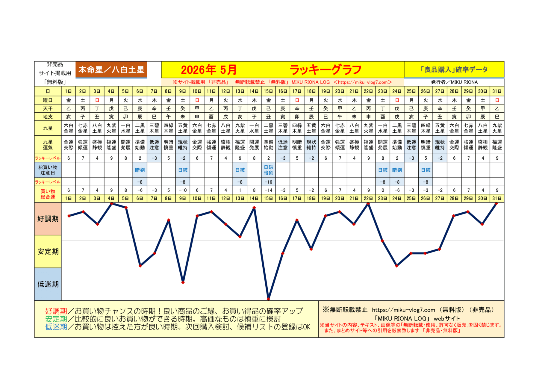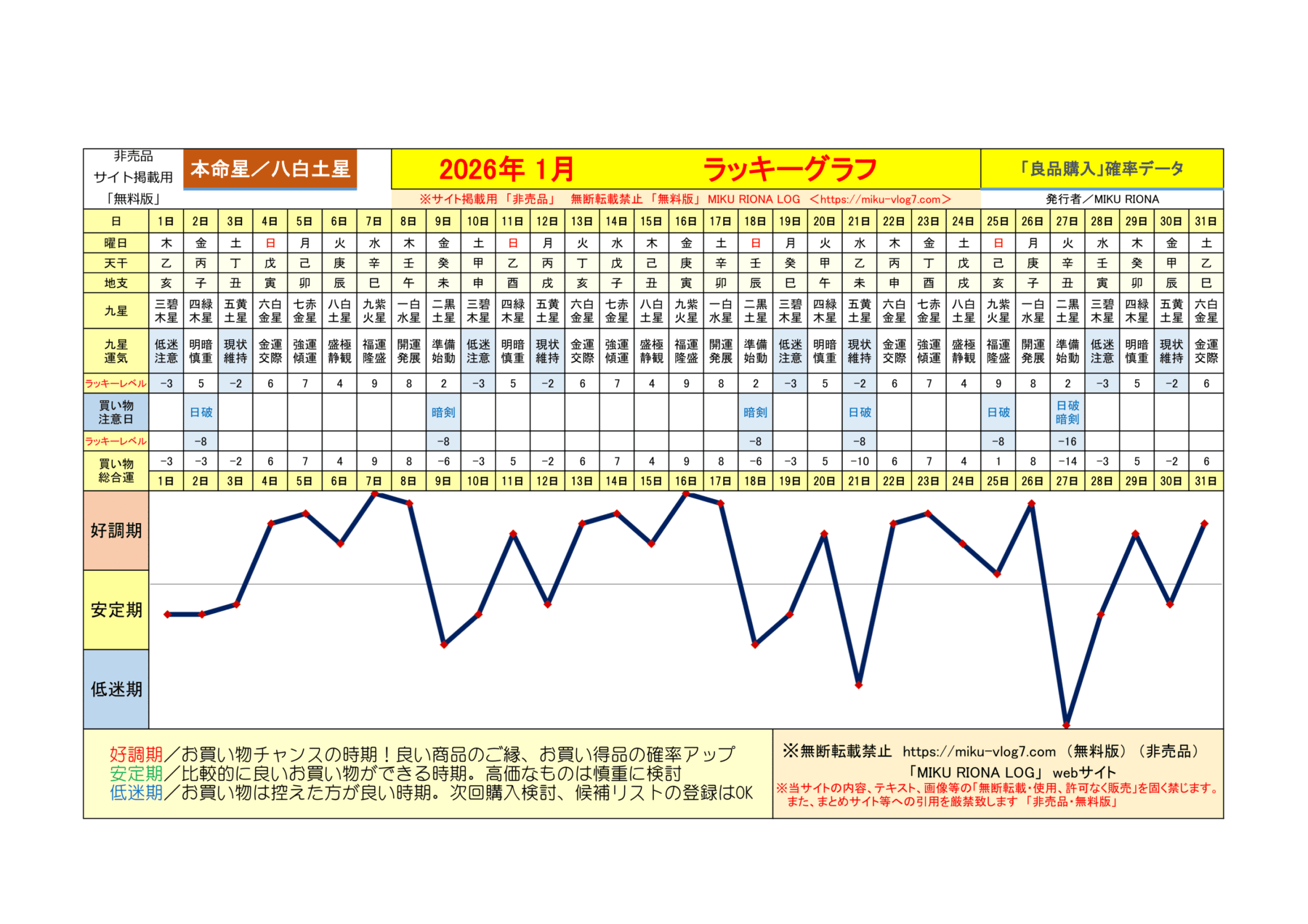 2026年2月~2027年1月/毎月のラッキーグラフ