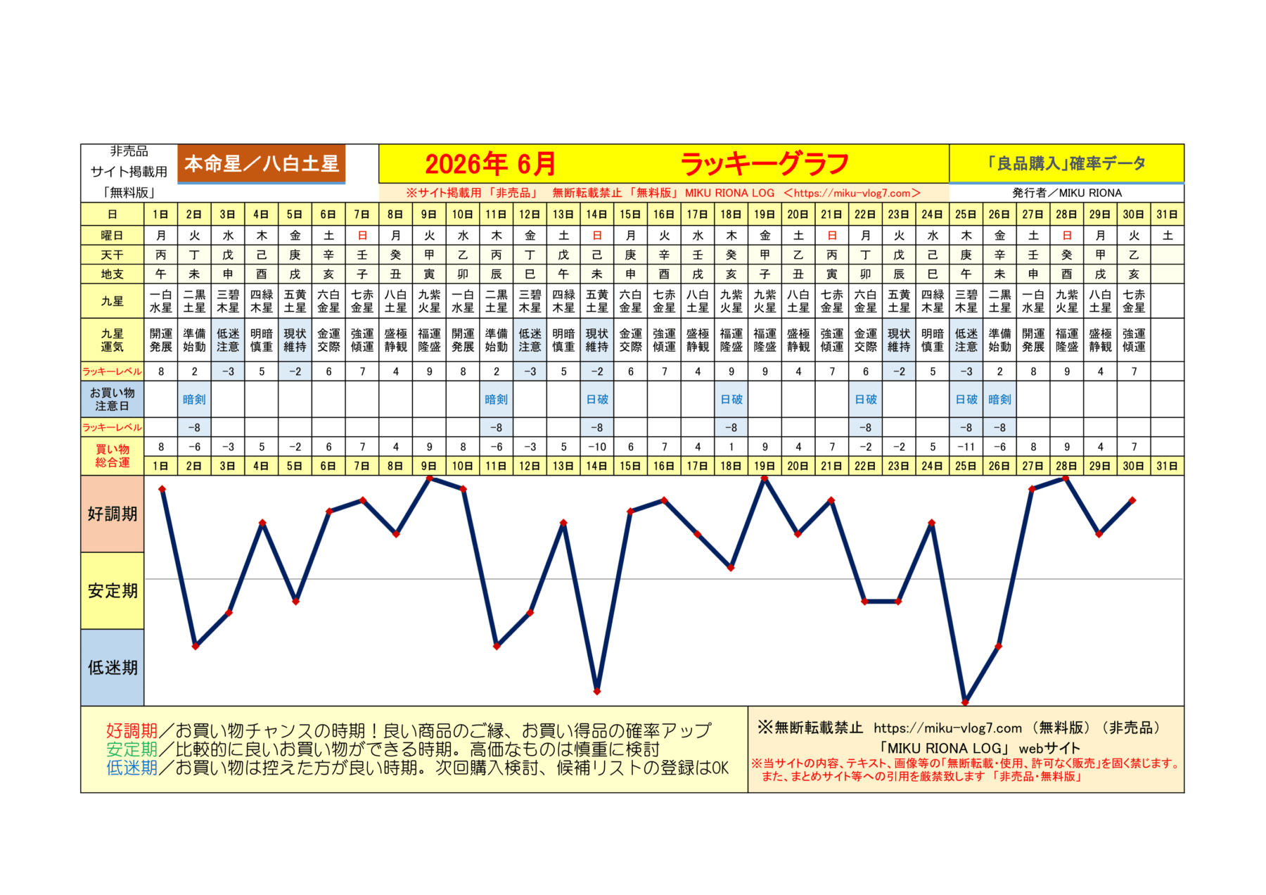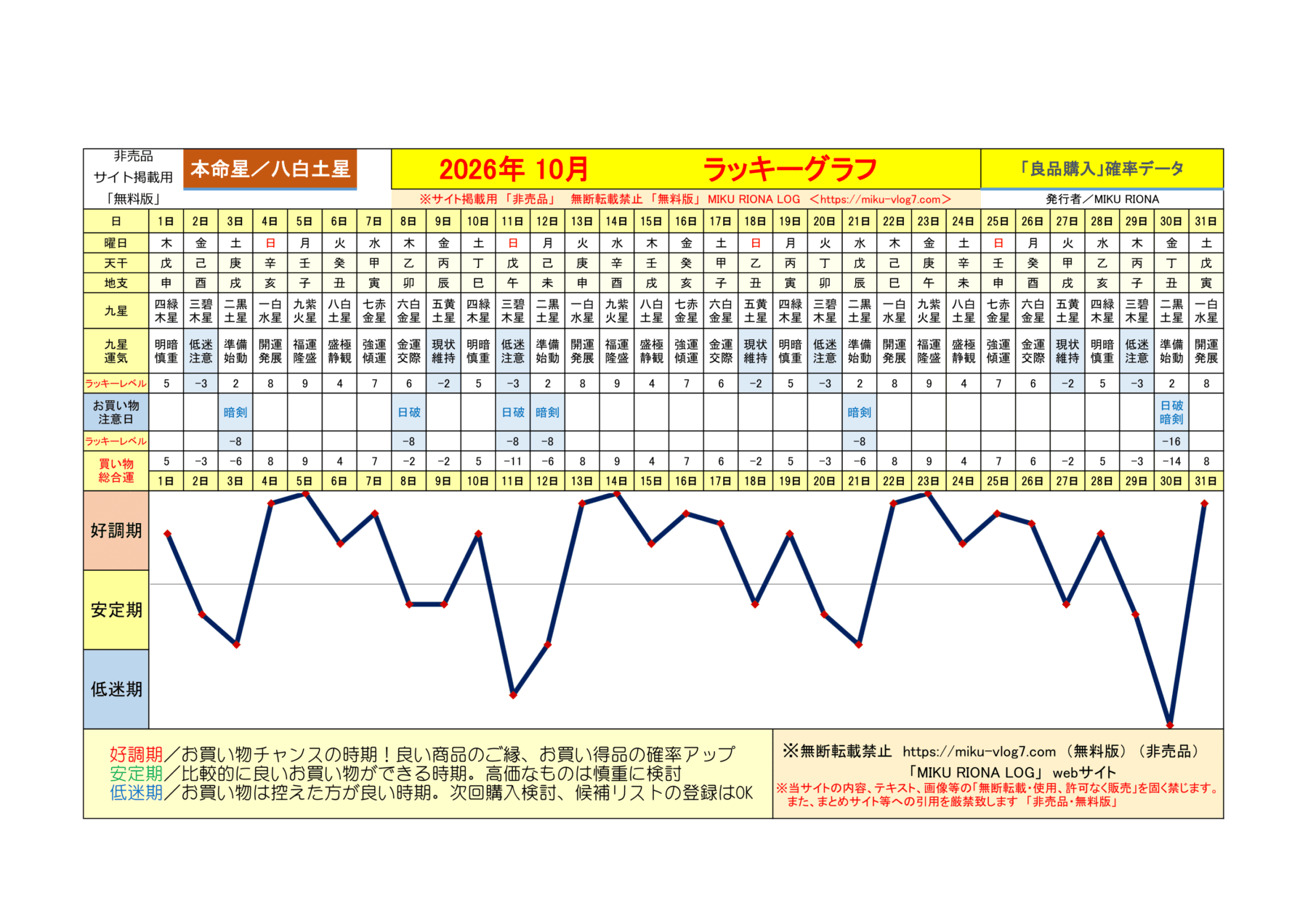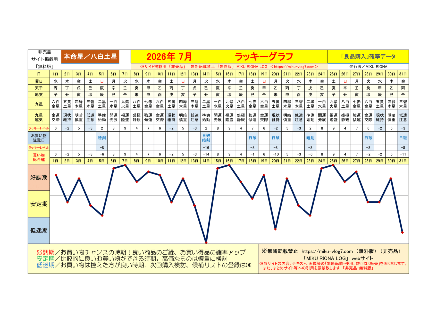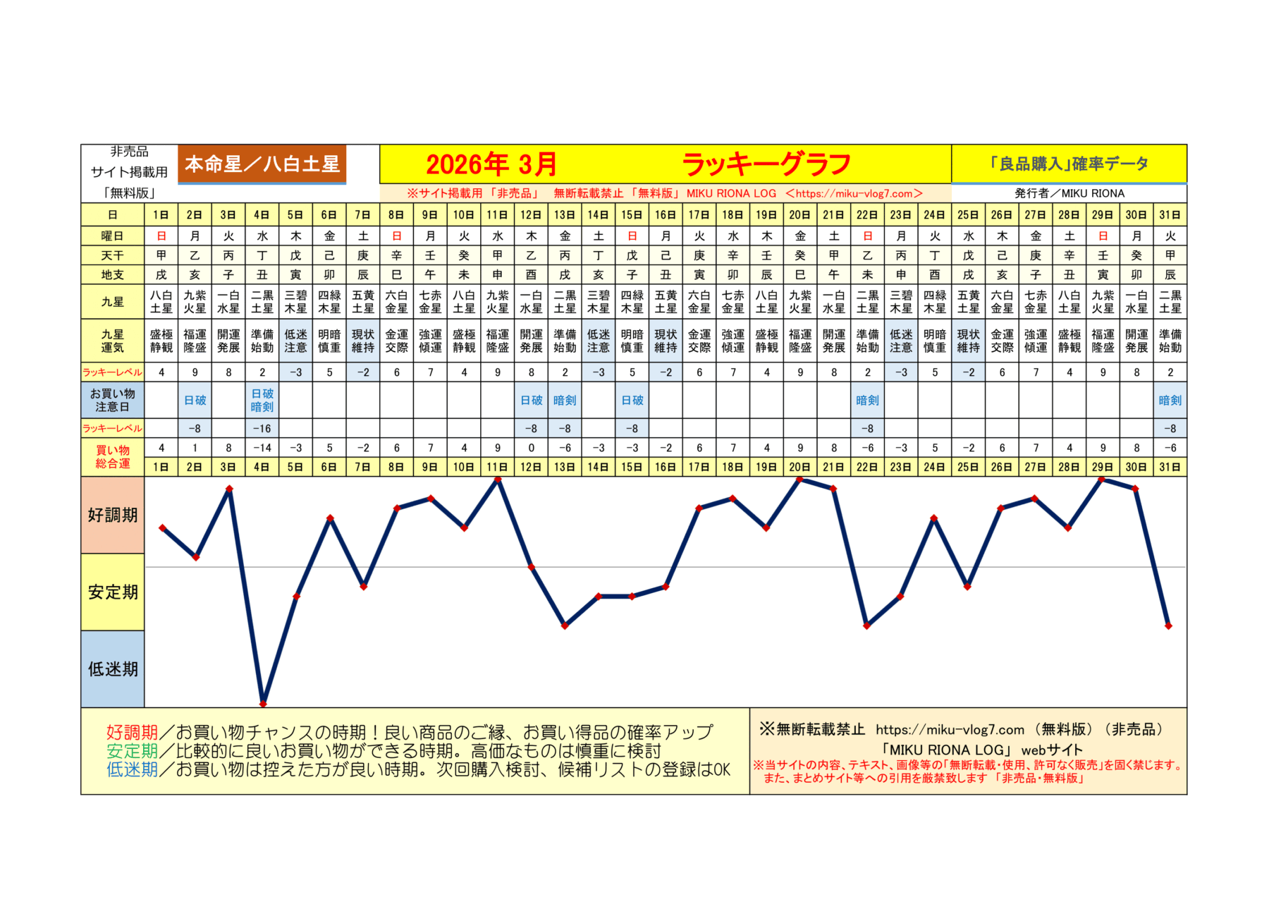 2026年2月~2027年1月/毎月のラッキーグラフ