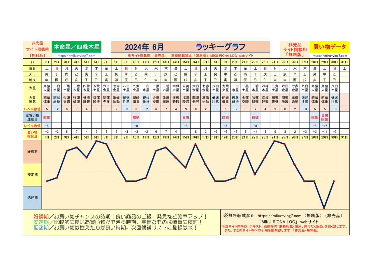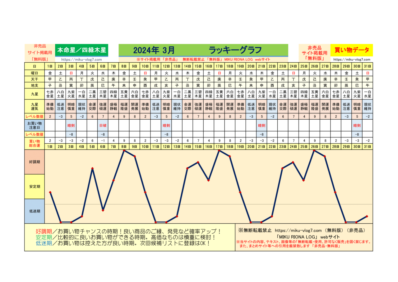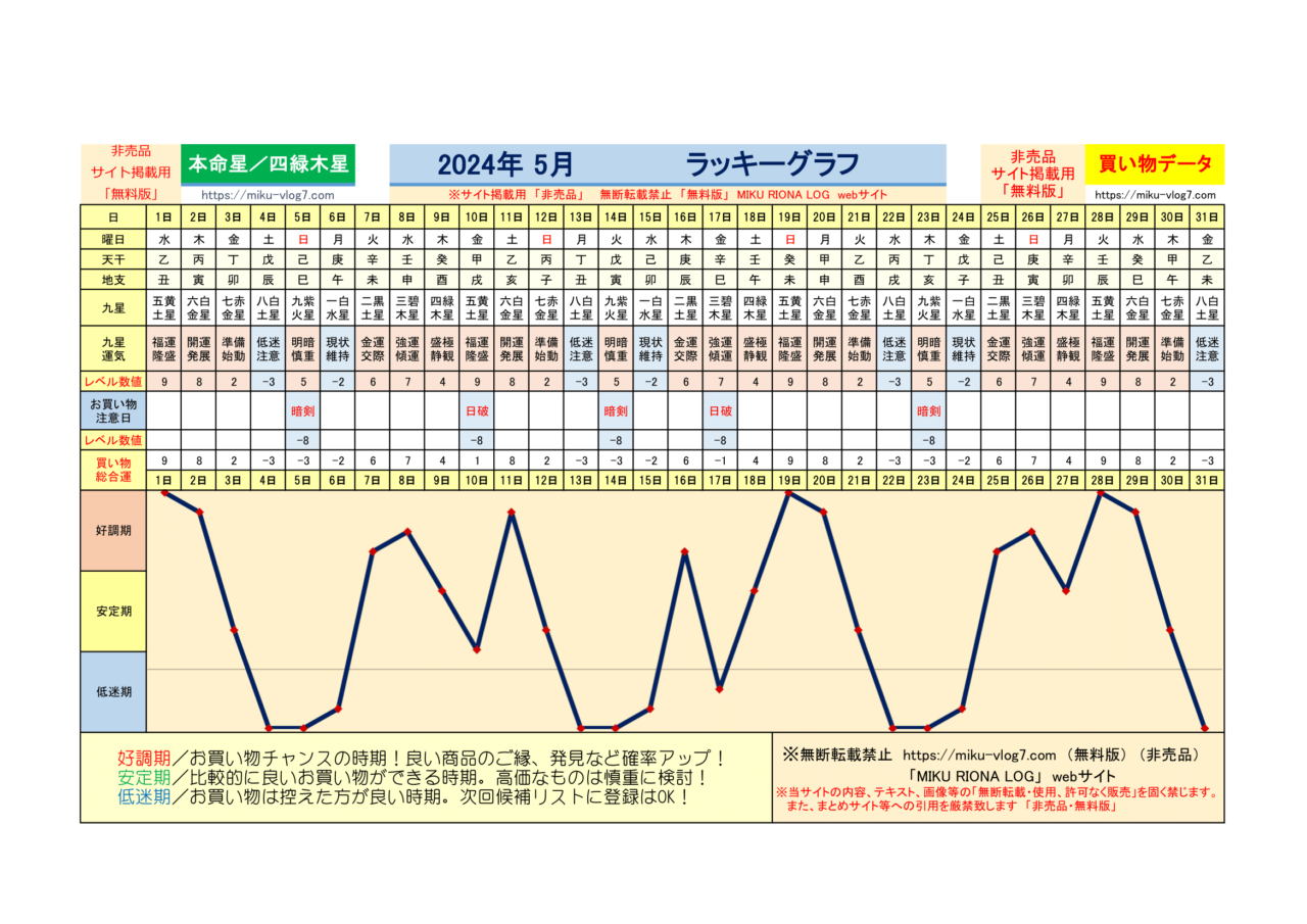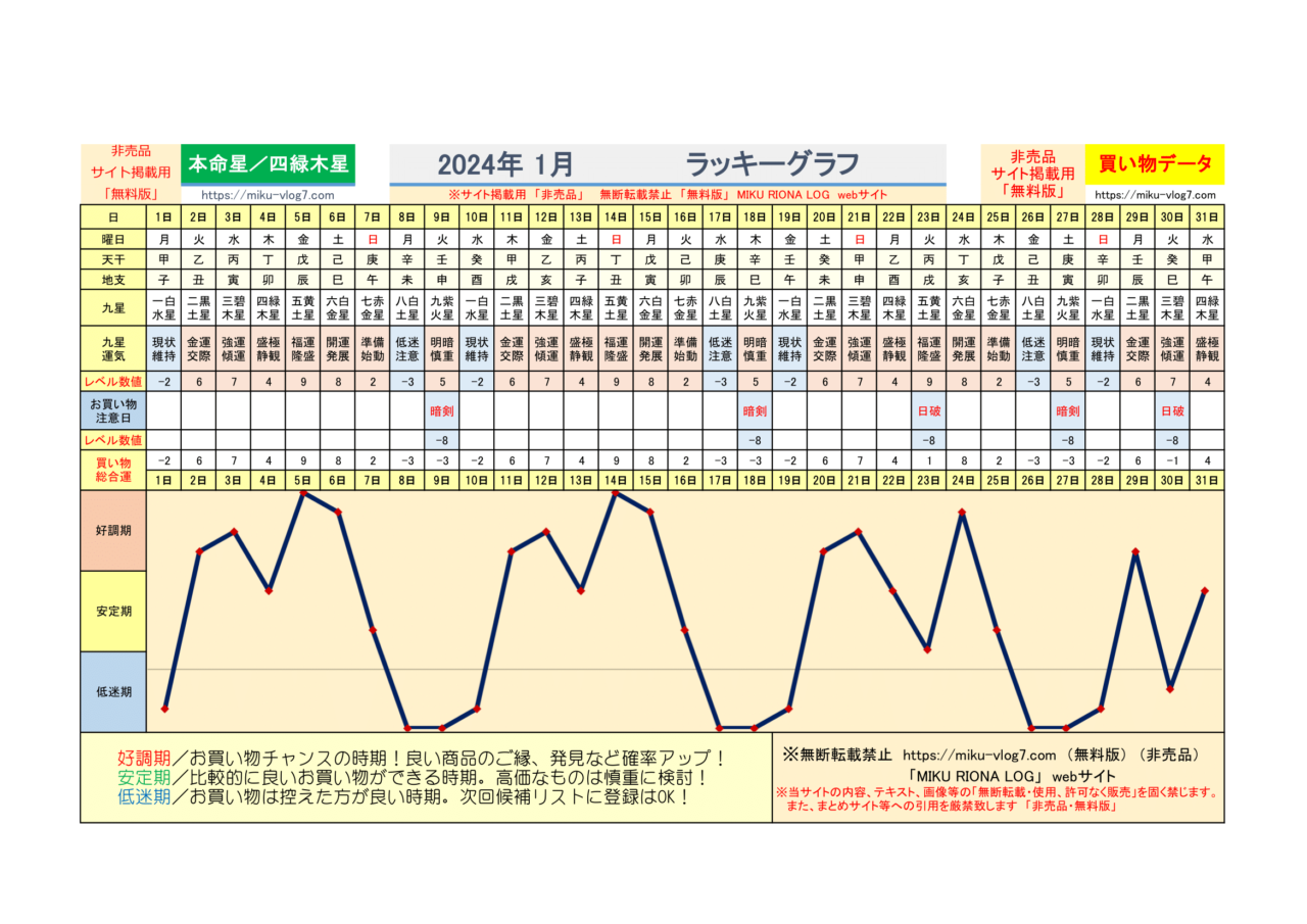 四緑木星のラッキーグラフを参考に良い商品と出会えますように