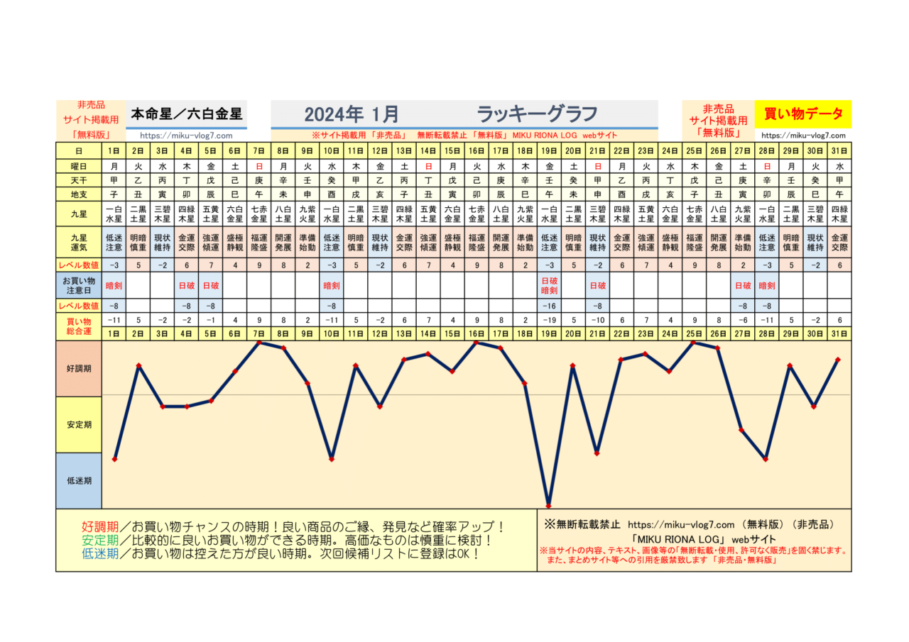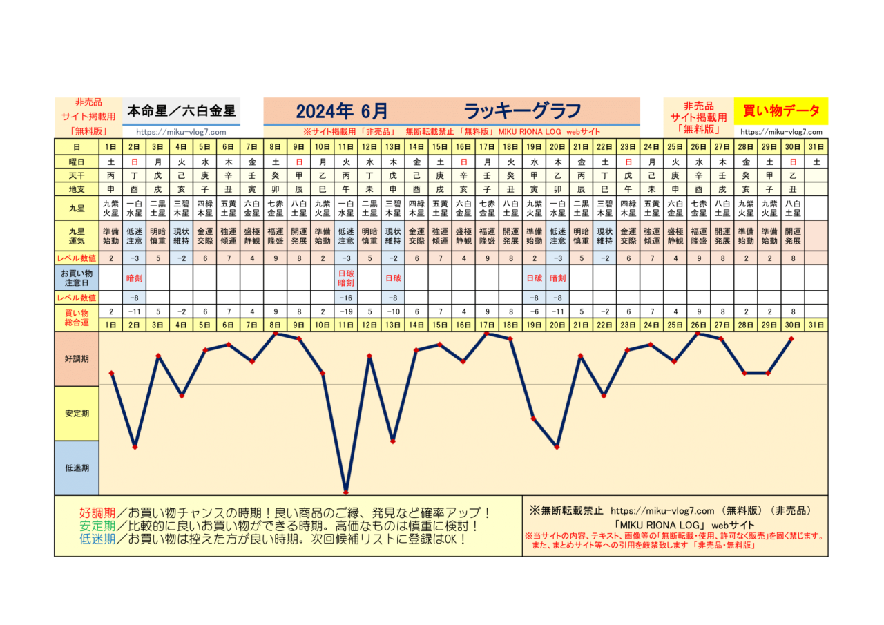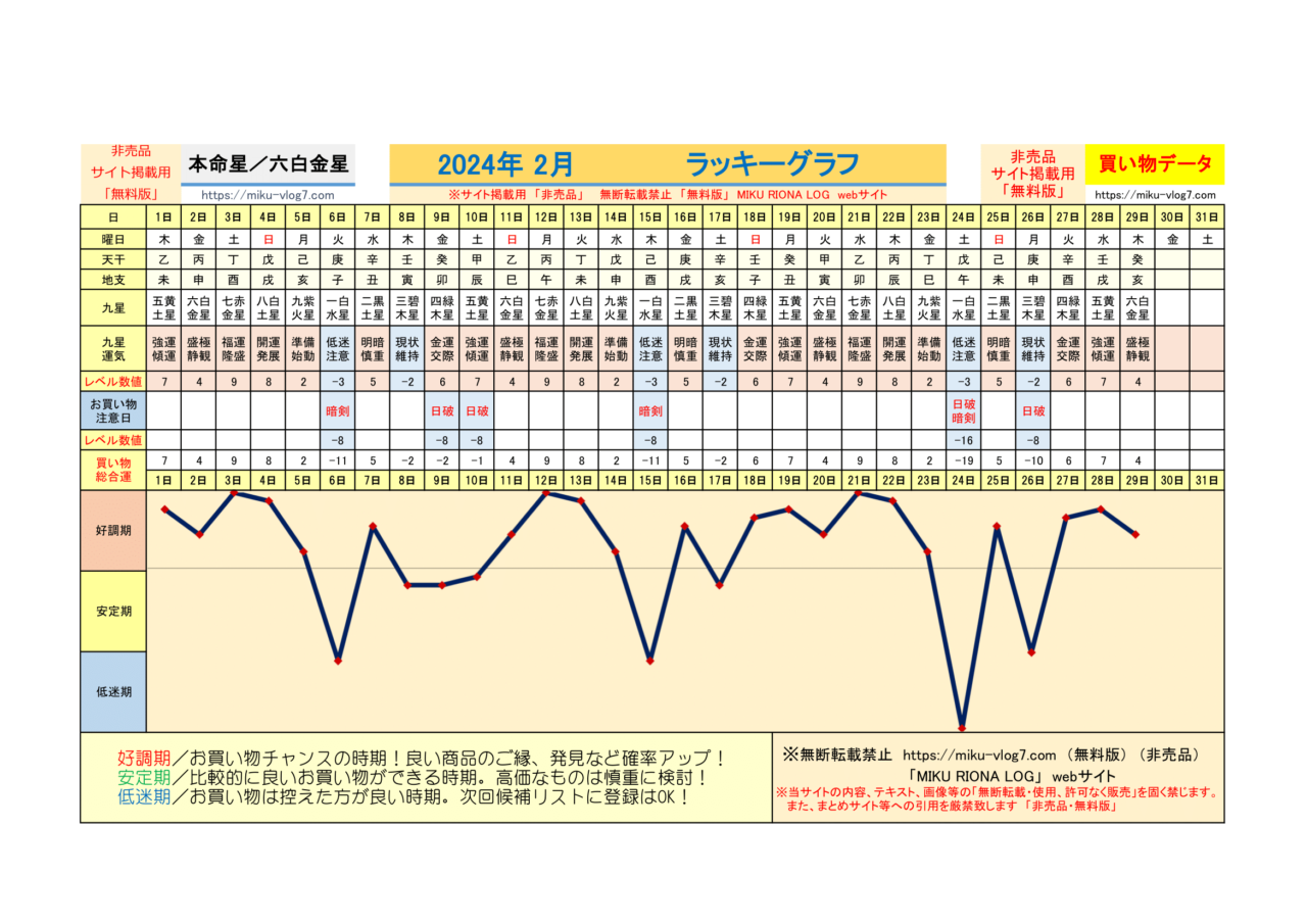 (2026年)六白金星/ラッキーグラフ | MIKU RIONA LOG