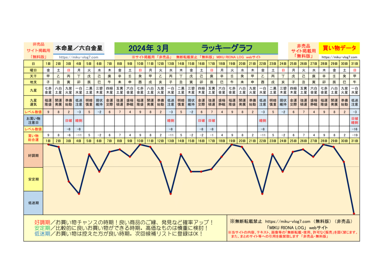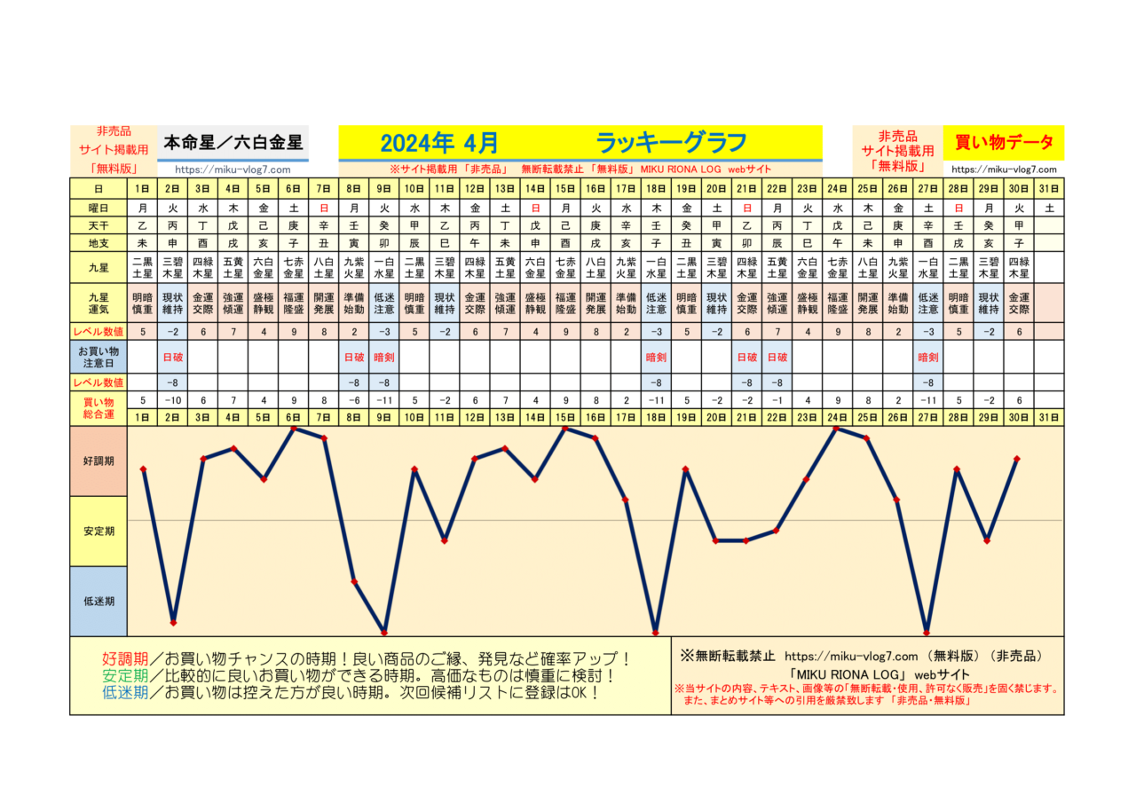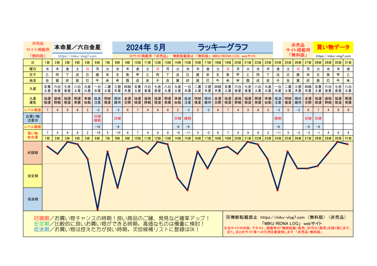 (2026年)六白金星/ラッキーグラフ | MIKU RIONA LOG